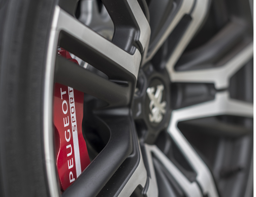Bringing it to a stop is handled nicely by the bright red four piston Peugeot Sport brake callipers clamping down on 380mm rotors which fill out the those 19-inch wheels nicely.